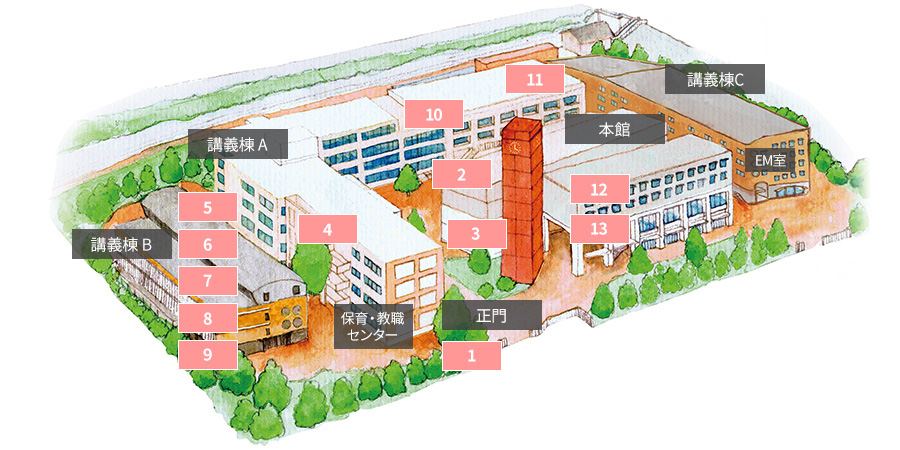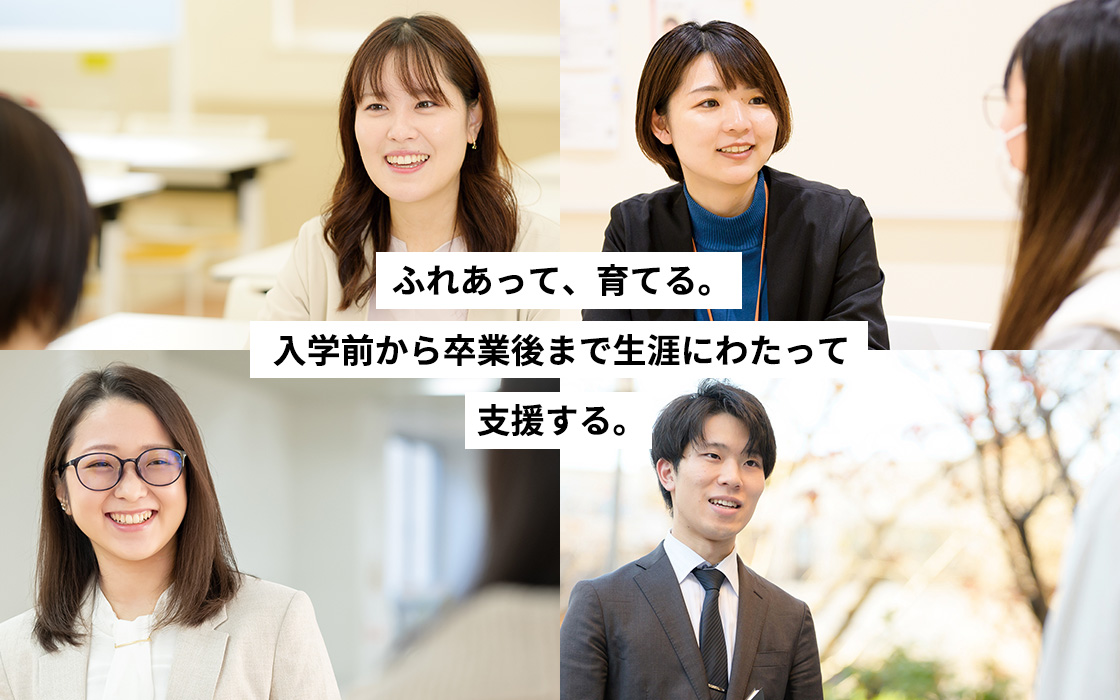 本学では、ひとりの学生の成長を複数の教職員で見守り支える、独自のサポート制度を設けています。