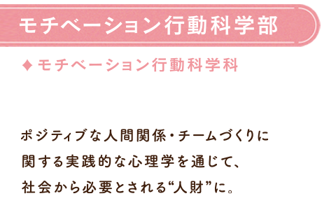 「隣にあの人がいてくれたらなあ」「あの前向きな姿勢がチームに元気をくれる」と期待される人。自然とまわりにやる気に満ちた仲間が集まってくる人。そんな“人財”へと、あなたを育てます。最上のスキルは、人に慕われる人間力だと考えます。