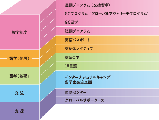 - 「国際センター」と学生団体の「グローバルサポーターズ」が、留学・国際交流をサポートします。