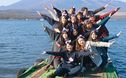 日帰りの「はじめまして遠足」(春学期)と、山中湖での1泊2日のインターナショナルキャンプ(秋学期)を開催。留学生を含めた、学生同士の親睦を深める、楽しいイベントです。