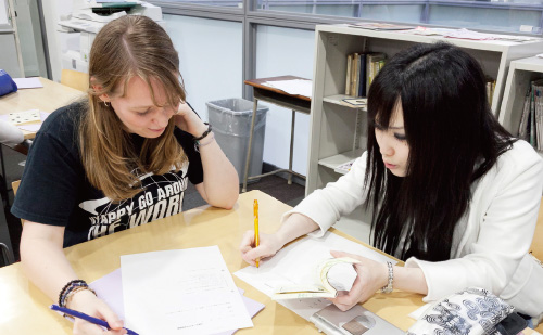 留学生を対象に実施されている日本語の授業に、学生がボランティアとして参加し、ともに活動や学習を行う制度です。調べものの手助けをし、発表にコメントを行うなど、留学生の日本語学習をサポートします。