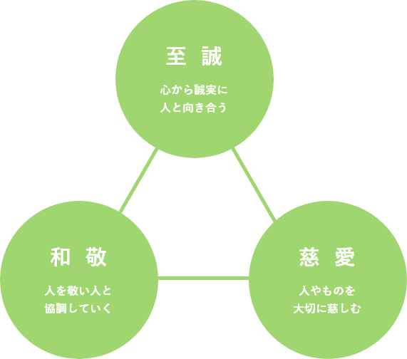 保育や介護福祉に携わる者に求められるのは、「人を思いやるあたたかな心」と「何事にも誠実に真摯に向き合い実践する力」です。本学の建学の精神「至誠」「和敬」「慈愛」は人が生きていく上で心と行動の指針になるものであり、この精神を基盤に、保育・介護福祉のプロフェッショナルを育成しています。