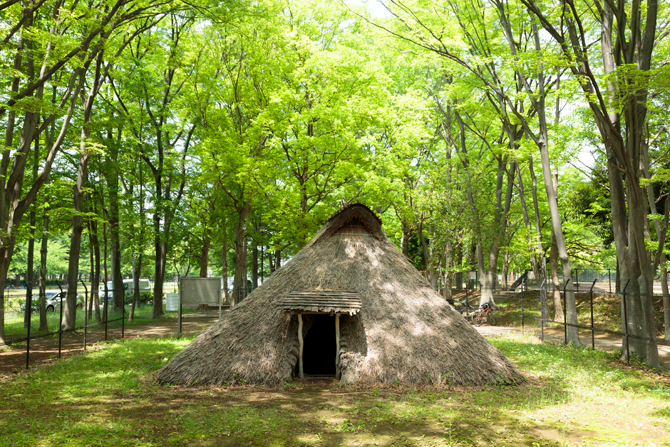 城北中央公園は、23区北部では最大の運動公園。野球場と小野球場が2面ずつ、人工芝のテニスコート、陸上競技場を有し、緑の中でスポーツを楽しめる公園です。公園内はイチョウ、ケヤキ、サクラなどの木々が多く、散策にもぴったり。春はお花見、秋は紅葉を楽しむこともできます。園内を歩いていると、一風変わった建物が。その正体は奈良時代の住居を復元したもので、この公園内では旧石器時代から平安時代に渡る遺跡が2箇所で発掘されたそうです。