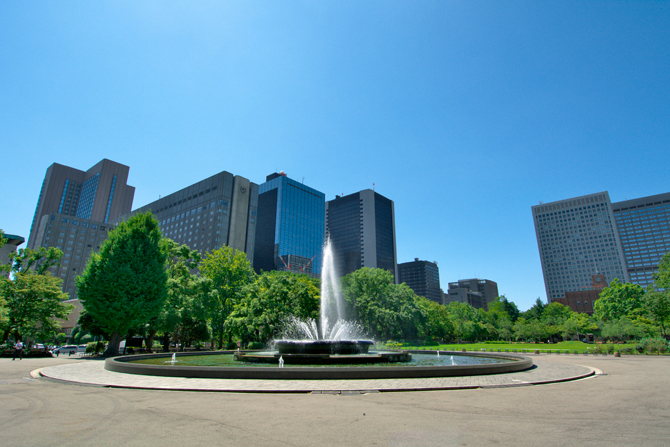 明治時代、日本初の近代的な洋風公園として整備された日比谷公園。シンボルの大噴水や各所を彩る花壇、野外音楽堂やイチョウ並木の園路など、見どころ満載の公園です。大噴水やペリカン噴水周辺は、テレビドラマや雑誌の撮影スポットとしても多く利用されてきました。そのほか、公園内には日比谷図書文化館やテニスコートなどの施設も充実しています。あまり知られていませんが、草地広場と隣接する健康広場には遊具もあり、子ども達が遊ぶこともできますよ♪
