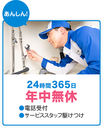 お電話から最短20分で水まわりの専門家が駆けつけてトラブルを解決いたします。