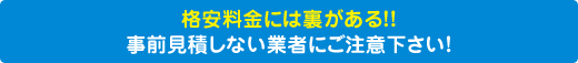 格安の修理料金を前面に打ち出している業者が存在しますが、これはあくまでも基本的な内容であり、一見して値段を安く見せるための仕掛けです。いざ修理を依頼すると、想像以上に高額な料金を請求されることも。安さを謳い、事前見積無しで作業を開始する業者にはご注意ください。このような錯覚に惑わされず、作業前に適正価格で見積を提示する業者を選ぶことをおすすめします。