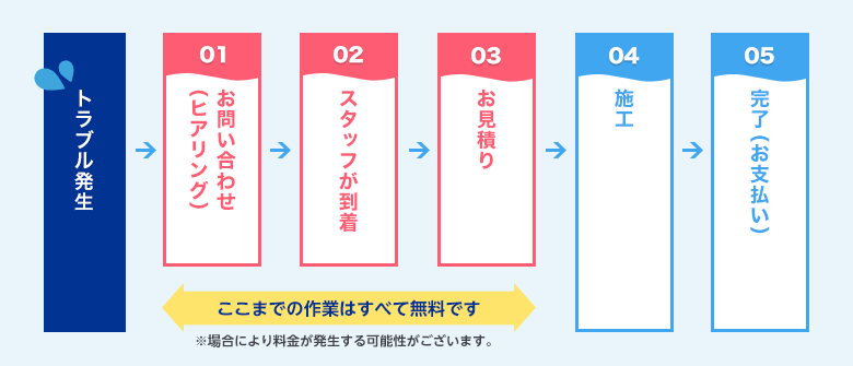 We handle everything from inquiries to estimates free of charge! We always provide an estimate in advance and only begin work once you have agreed. Mizu no Seikatsu Ambulance has a transparent accounting system, so the price will not change after the estimate is given!*In some cases, a fee may be charged.