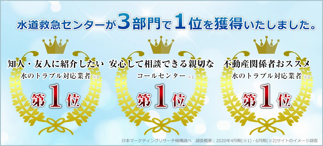 水まわりのトラブル・水道救急センターを運営する当社がブランドのイメージ調査において、以下の3部門で第1位を獲得いたしました。